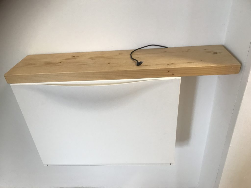 Modify IKEA Hejne shelves to fit into a porch and fit – cheaper and faster than bespoke shelving and stylish.