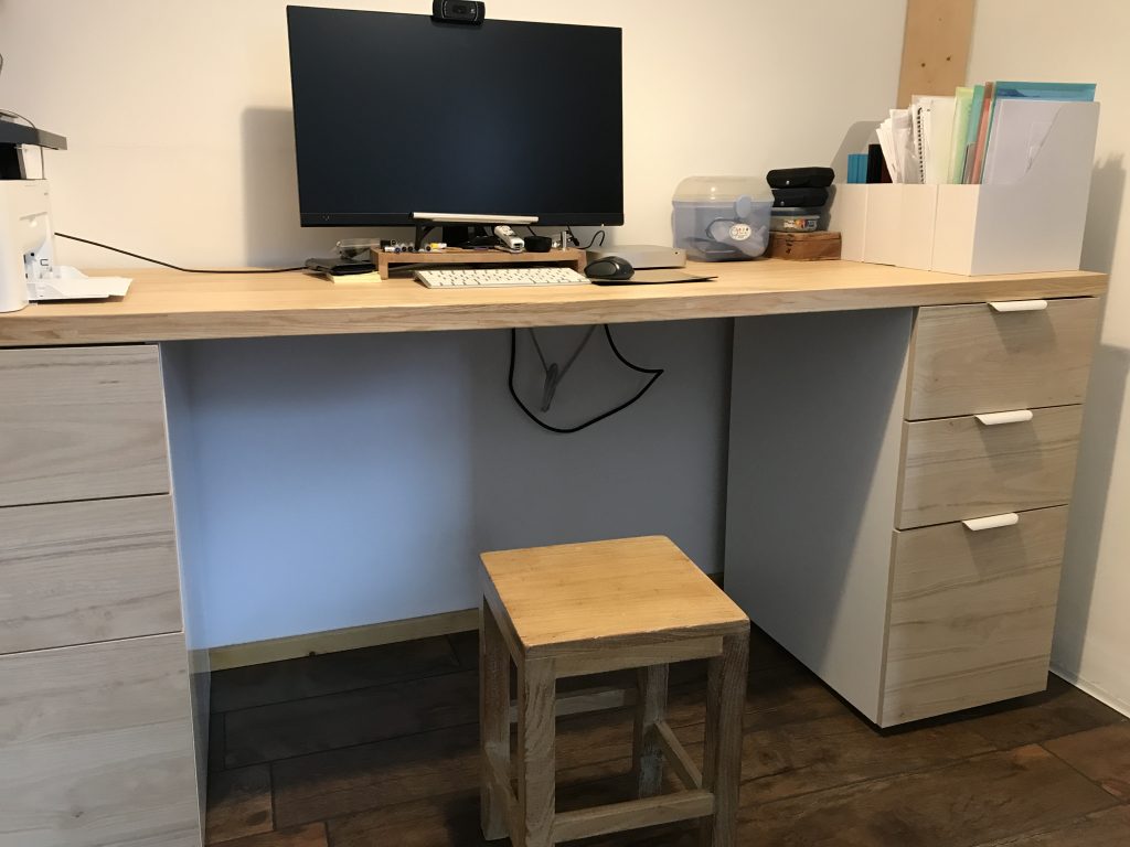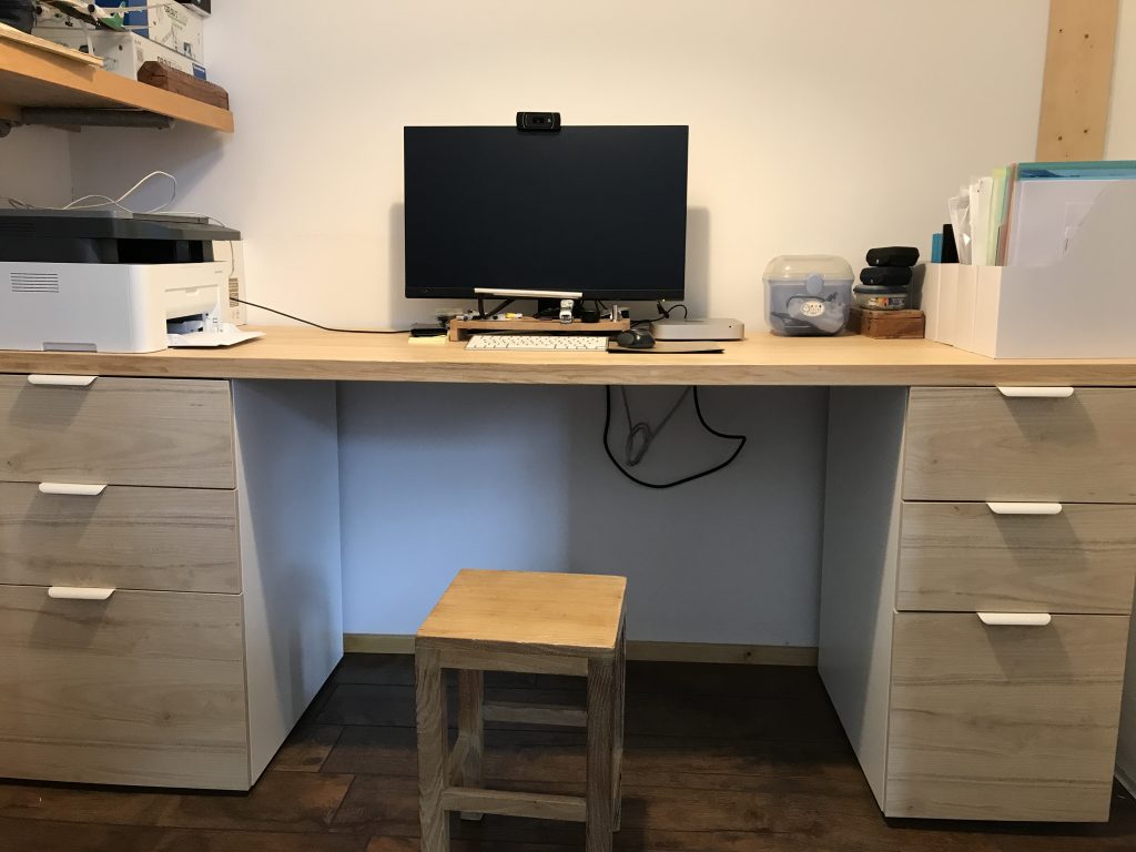 A work-from-home desk from two IKEA kitchen units and a discounted kitchen counter-top