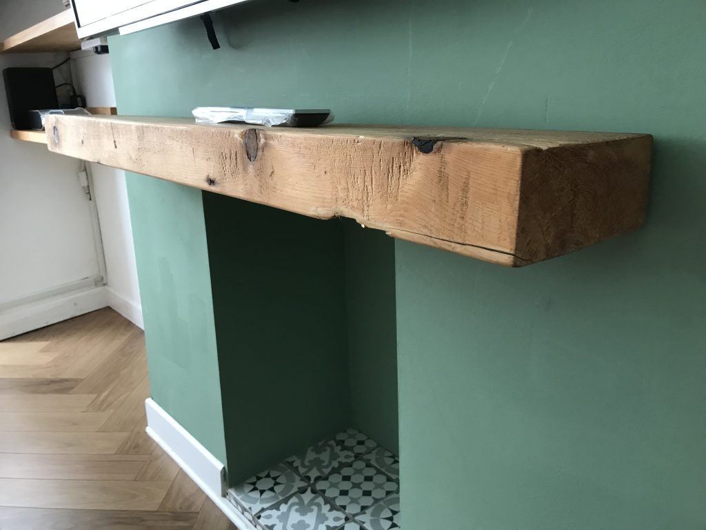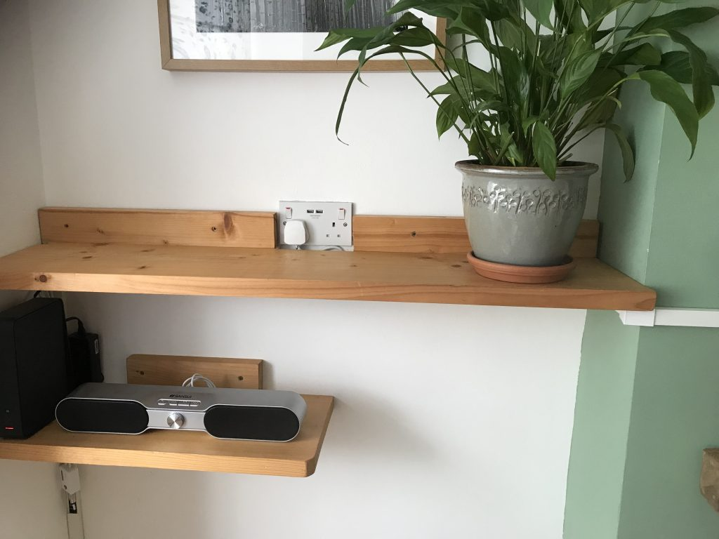 Modify IKEA Hejne shelves to fit into a porch and fit – cheaper and faster than bespoke shelving and stylish.