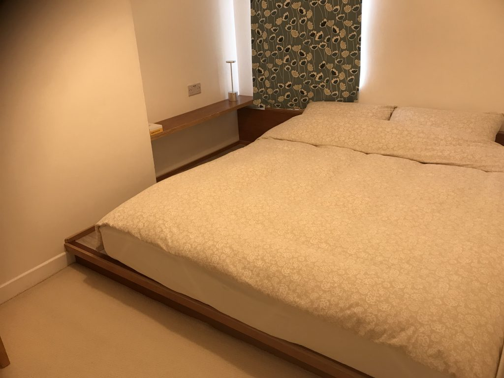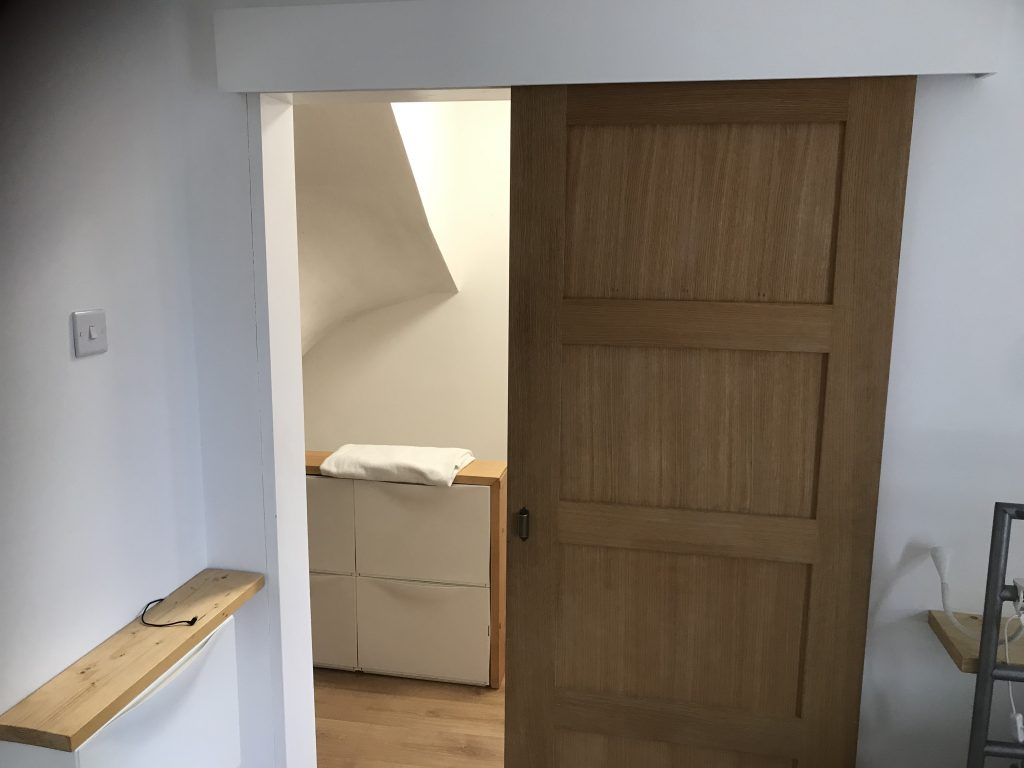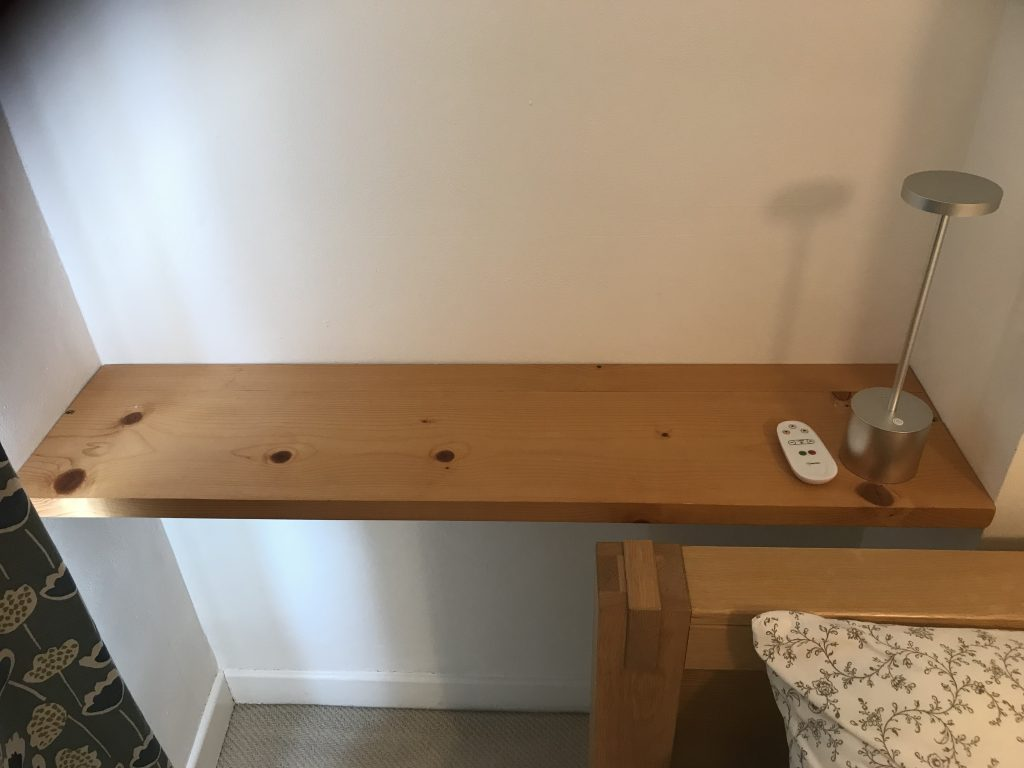 Small open wardrobe and bedside shelves / dressing table for a small bedroom.