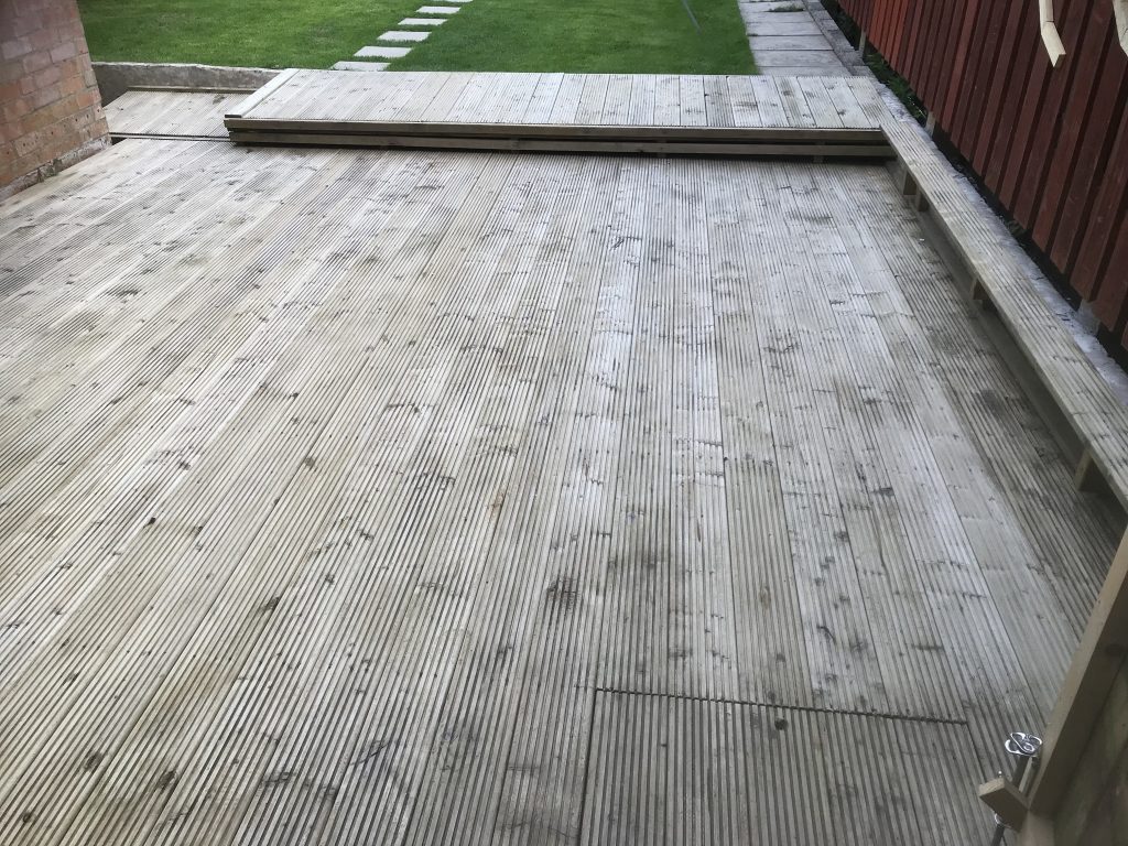 I can build all types of decks to meet your needs with hatches to allow access to drains ( a legal requirement that many people forget). All decks are properly fabricated with strong frames and the area under the deck is laid in aggregate. This deck is four years old and still looks good after a quick spring clean.