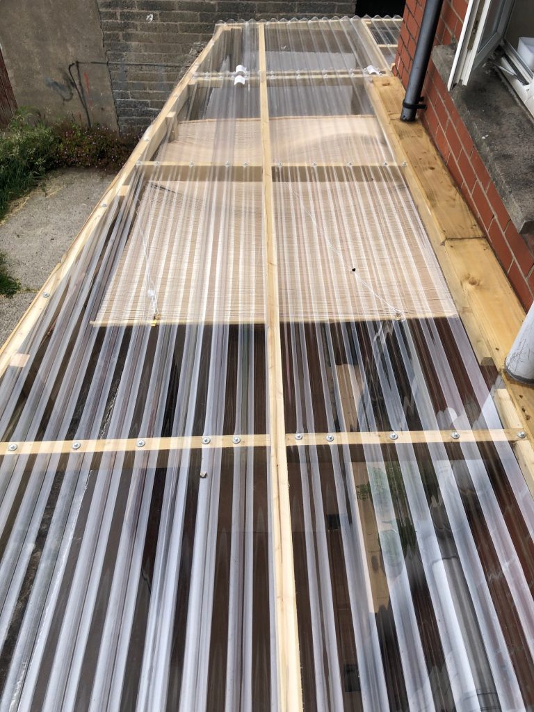 This must be the cheapest way to create an extra room in a small terraced property. If you have a yard, think about roofing it using clear polycarbonate panels to create a light-filled space for al fresco dining even if it rains, to provide extra storage, as a space to house a washing machine and tumble drier to allow you to use your kitchen space better, as a space to dry clothes or as an outdoor bar for parties. The wooden window sills aren’t expensive and create a finished look that makes outdoors look like indoors. They can also be used as a bar top.